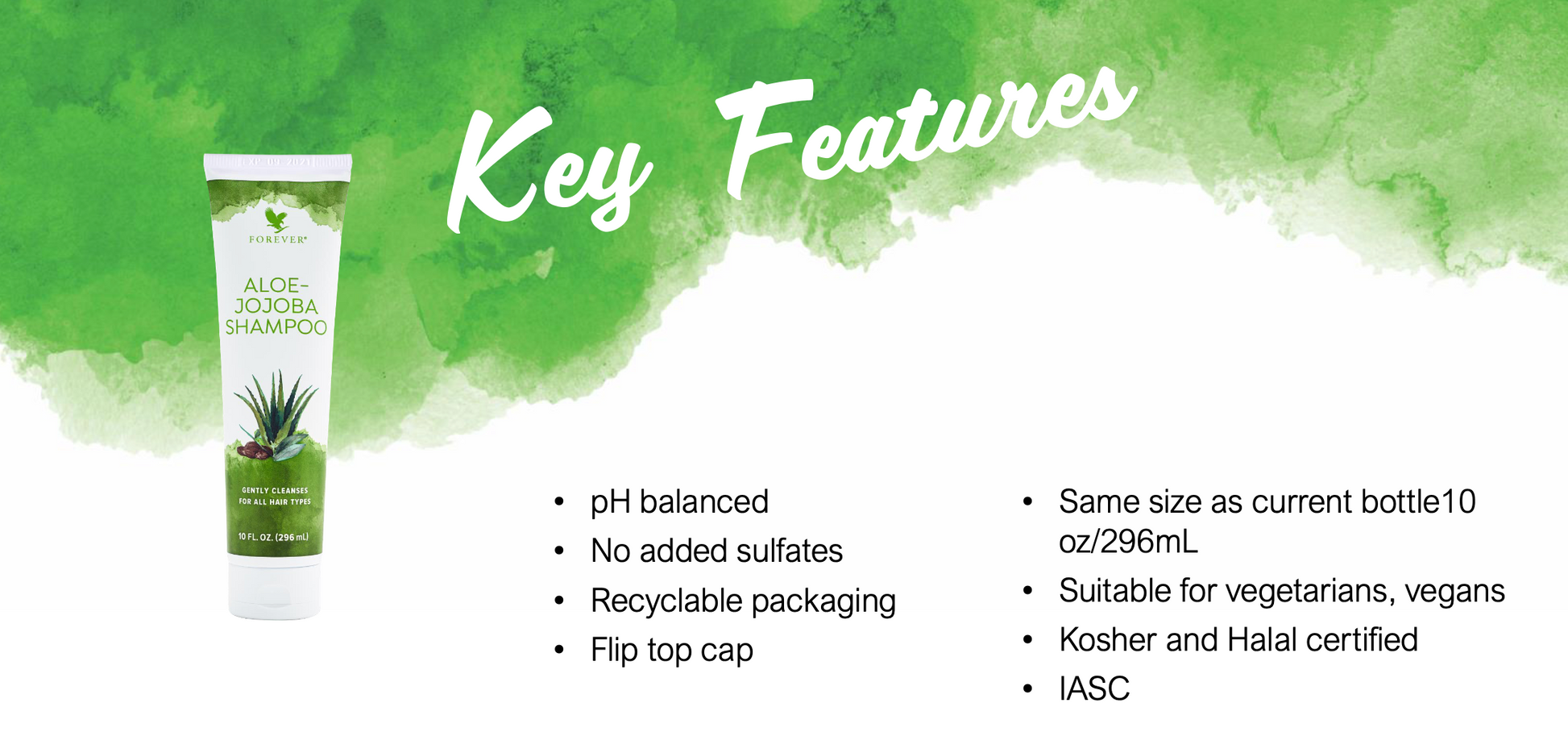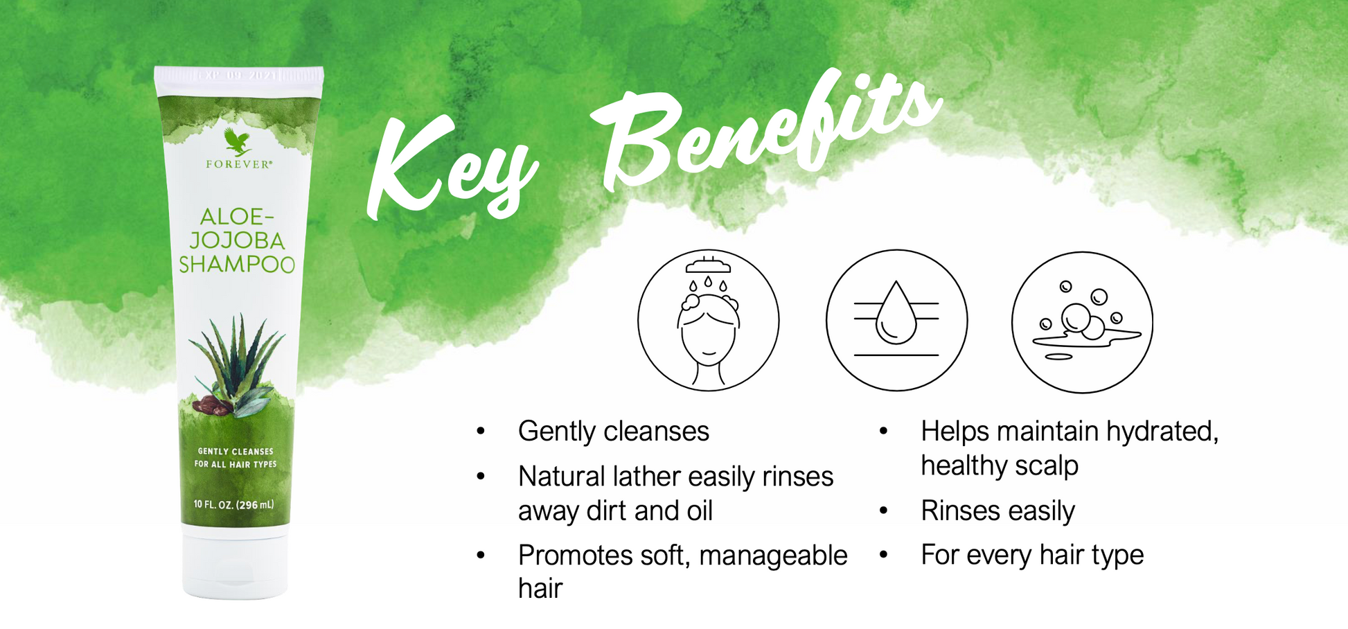 Apply to wet hair, massage gently into the scalp and hair, then rinse thoroughly. Follow with Forever Aloe Jojoba Conditioner for the best results.